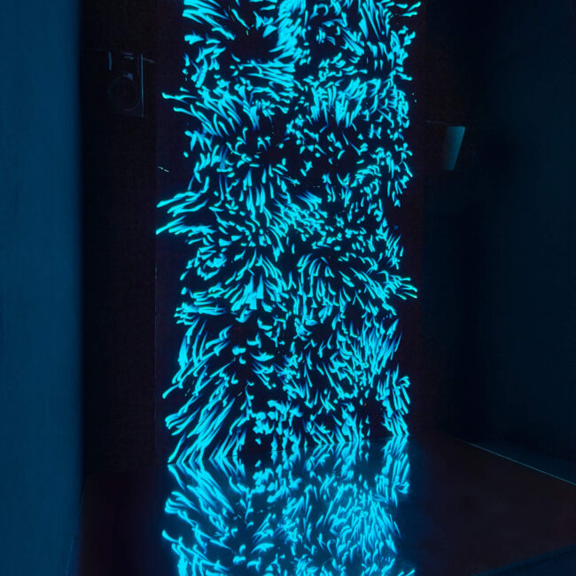 A Lumin egy természet ihlette élő alkotás, amely az energiáját a közönségtől kapja. A sötét barlangok mélyén élő izzóférgek lárvatelepeinek valós idejű szimulációja, amely hozzájuk hasonlóan nyomon követi a nézők mozgását, amelyet a virtuális világban fény-, és erőterekké alakít át. Ennek segítségével egy láthatatlan kapcsolatot jön létre köztük, hogy a közönség maga is a műalkotás részévé válhasson. Amikor a néző interakcióba lép velük, megfigyelheti a biolumineszcens (fénykibocsátó) lények ténylegesen zajló, életszerű viselkedését, és valós idejű interakciókon keresztül élheti át a velük való találkozást.