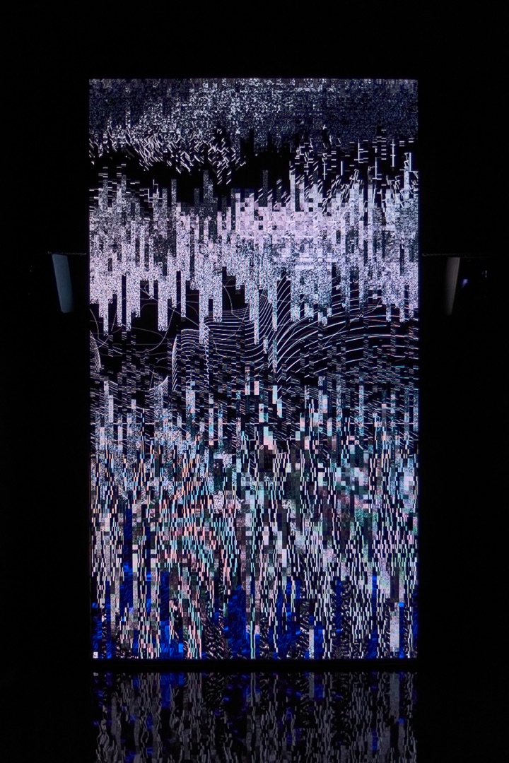 A művészcsoport a digitális médiumon keresztül megragadja a víz változékonyságának, transzparenciájának és fényvisszaverő tulajdonságainak az esszenciáját, fizikai jellemzőit, és egy fénylő, folyamatosan változó digitális tájképpé változtatja a világító falat.