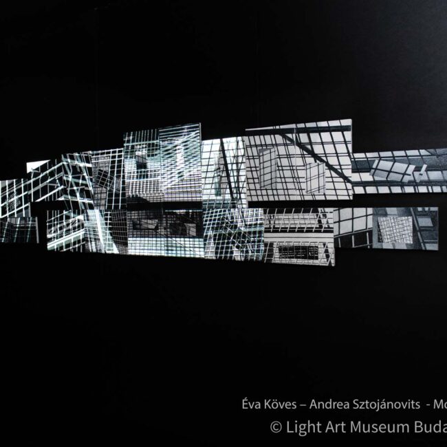 Köves Éva (Moszkva, 1965) festőművész az 1990-es évek elejétől saját fotóit kasírozza vászonra, majd olajjal festi tovább őket, többnyire nagyméretű, több tucat darabból összeállított, „kép a képben” típusú festmény-konstrukciókat alkotva. Kompozíciói felépítése, stiláris nyelve a huszadik század első felének avantgárd szellemiségére, a geometrikus absztrakció szín-forma kísérleteinek hagyományára támaszkodik és Moholy-Nagy László konstruktivista programjának továbbgondolásaként értelmezhető.