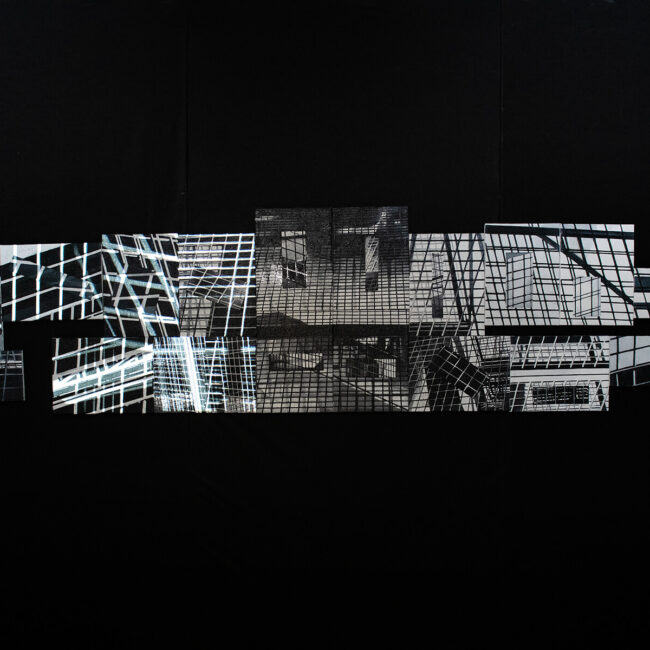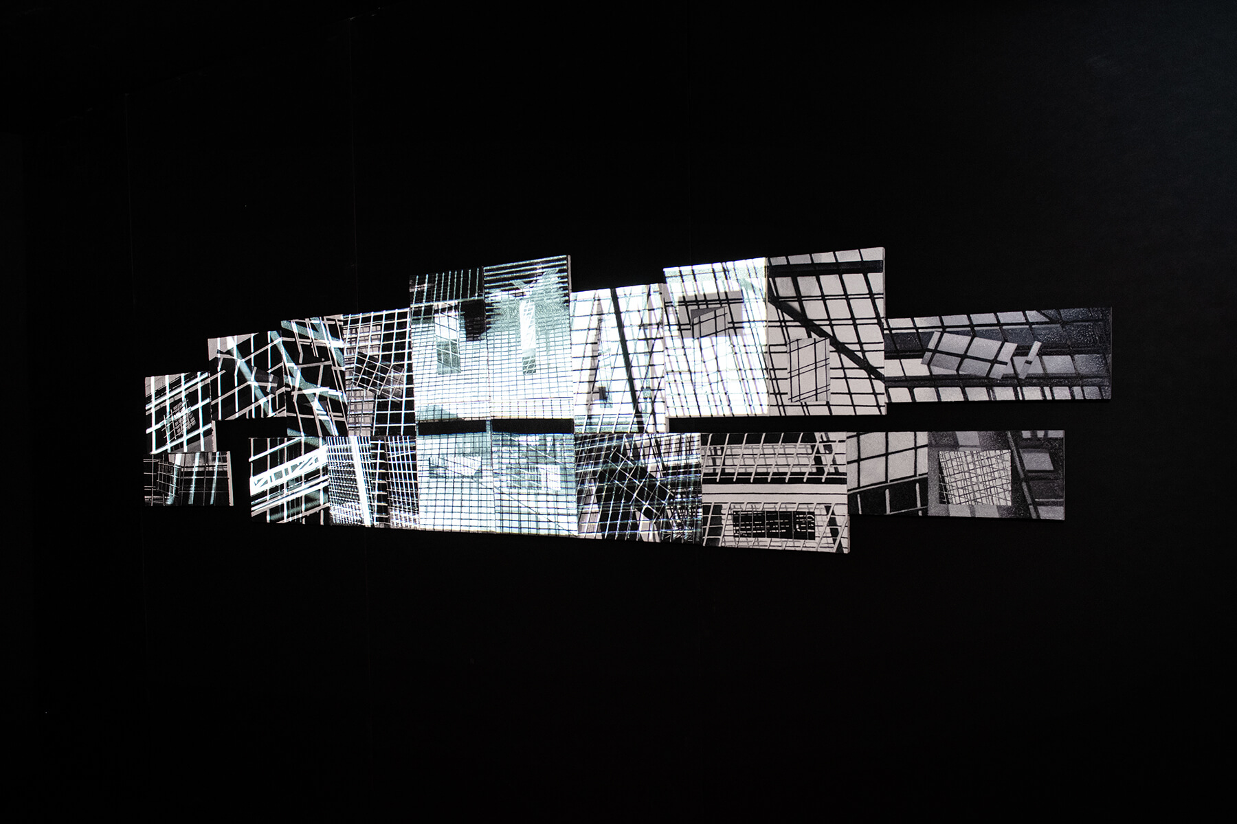 Az itt látható installáció a festékpigmentek mint részecskék és a fénysugarak mint hullámok között létező elméleti összefüggés fizikájára reflektál. Az alkotás úgy kombinálja a hagyományos vászon alapú olajfestményt a számítógépes animációval, hogy a kompozíció strukturáját követő és és alapelemeiből szerveződő vetítés a festmény mozgó másolatává válik. A festett és a vetített formák találkozásából és kölcsönhatásából olyan szerkezeti összefüggések jönnek létre, amelyek úgy hatnak, mintha a kép folyamatosan reprodukálná önmagát. A néző szemtanúja lesz annak, ahogy a vetített mozgókép átszellemíti, átformálja az absztrakt geometrikus festmény statikus vázát. A testies és az anyagtalan rétegek összeolvasásával egy olyan virtuális mező jön létre, ami a pigment alapú festmény és a digitális projekció szimbiózisát létrehozó kiterjesztett asszamblázsként funkcionál. A „fényfestett festménynek” is nevezhető művészeti forma nem csak a percepció határainak kitágítására törekszik, de arra is választ kíván adni, hogy a hagyományos és az új médiumok közötti transzparencia milyen új látási élményekkel társul.