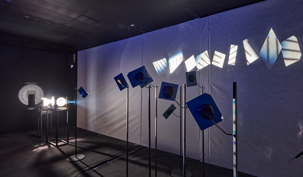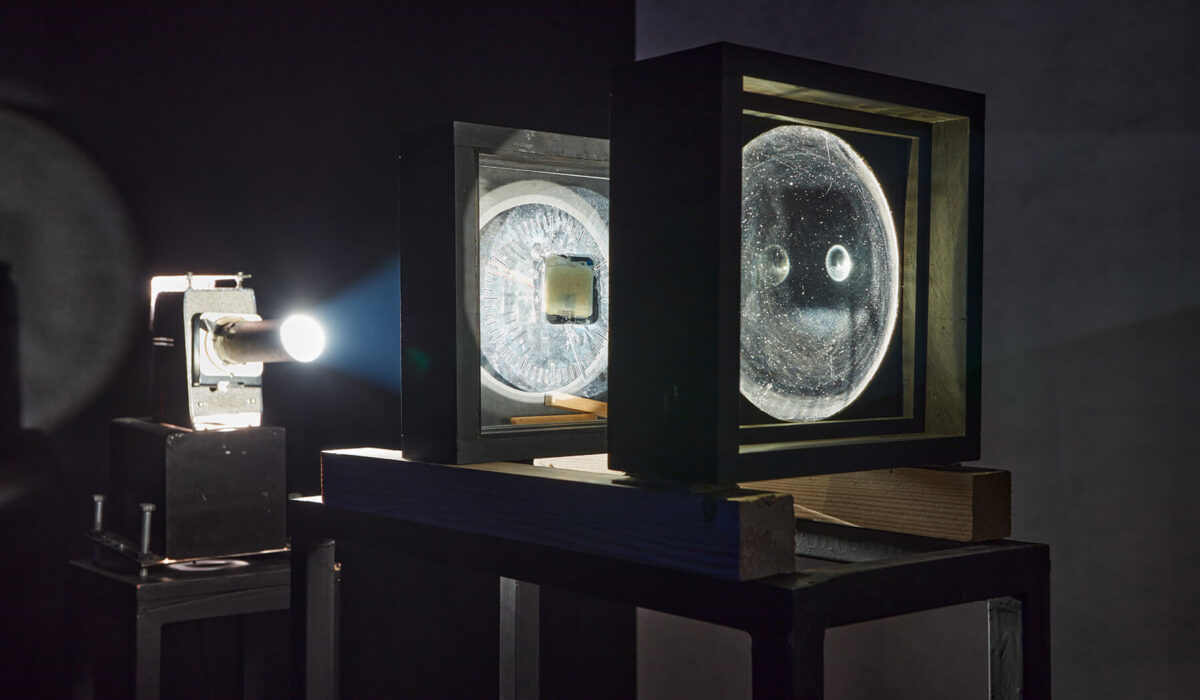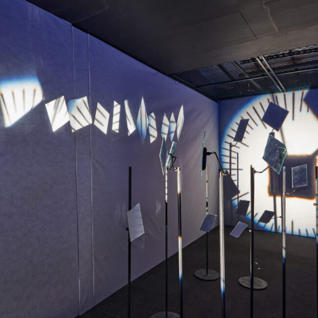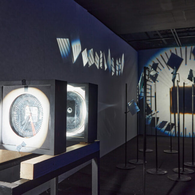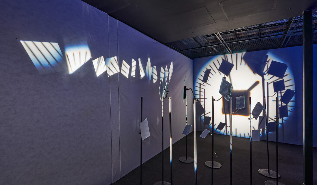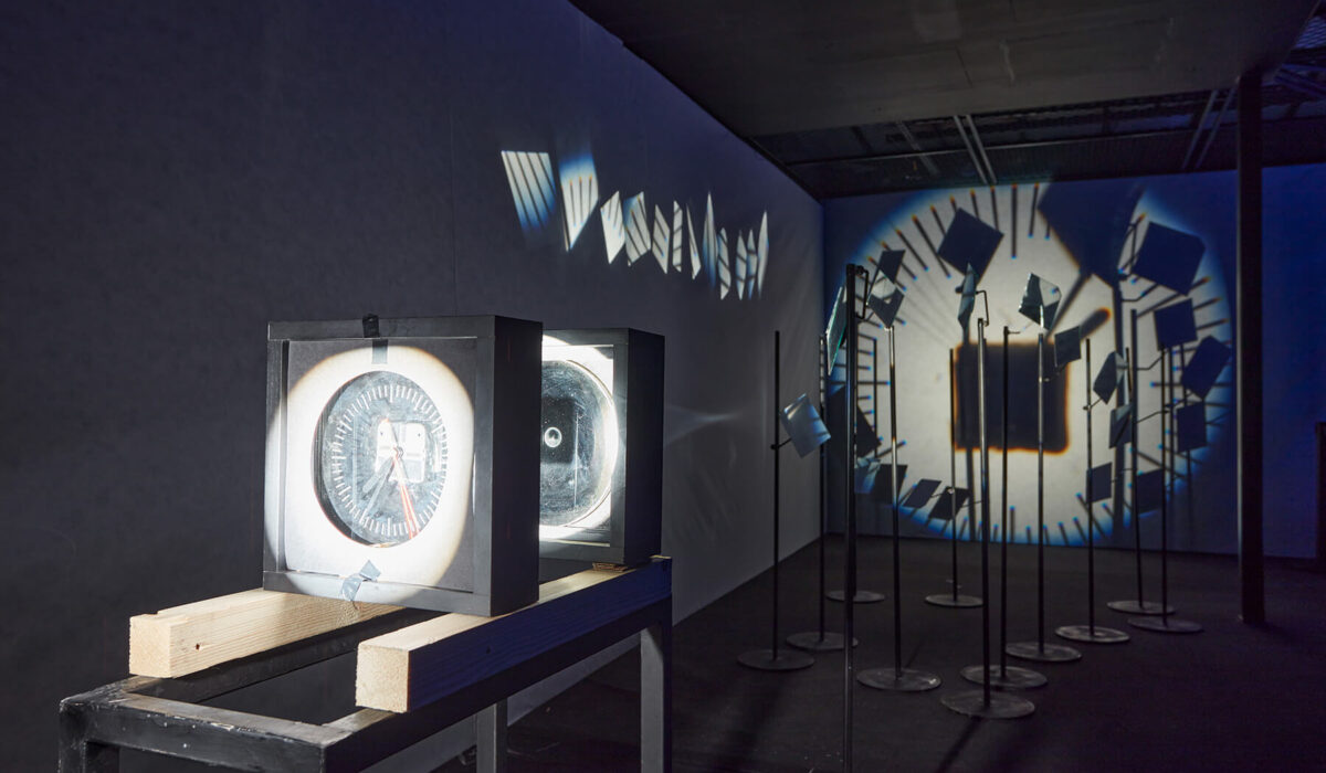 Fényinstalláció (diavetítő, óra, kondenzorlencse, tükrök, állványok) 990 × 300 × 200 cm Irokéz Gyűjtemény