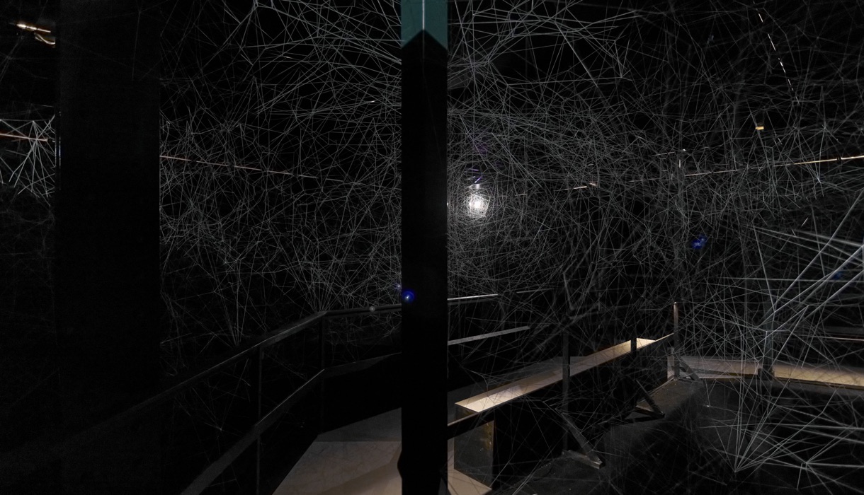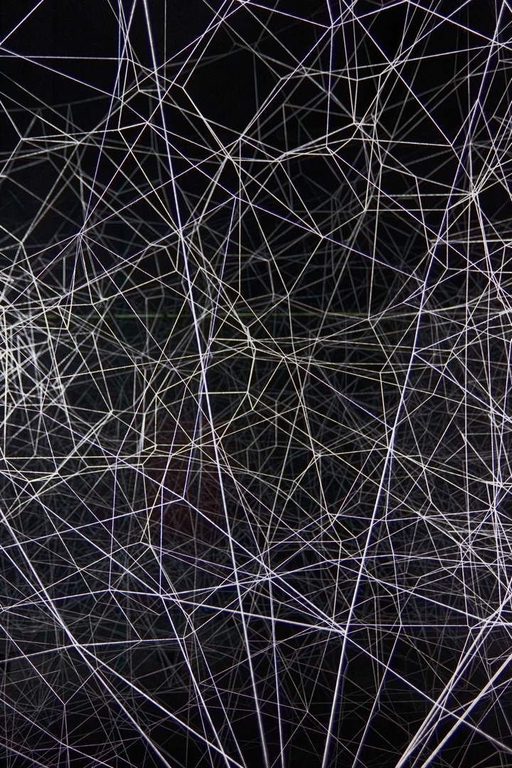 A teret lentről felfelé egy fénypászma szkenneli, ez világítja meg annak a több kilométer hosszú zsinórnak a kifeszített részleteit, amely sűrűn behálózza a teret. Az installáció egyszerű anyaghasználata és struktúrája ellenére komplex jelenségeket tesz érzékelhetővé. A DLP- (Digital Light Processing) projektorral vetített fehér fény például a kontrasztos árnyalatkülönbségek miatt több ponton a szivárvány különböző színeiben jelenik meg. És bár a fény mindig ugyanolyan sebességgel halad, a háló különböző szögei és távolságai miatt mégis úgy tűnik, mintha a fénypontok más sebességgel mozognának körülöttünk.