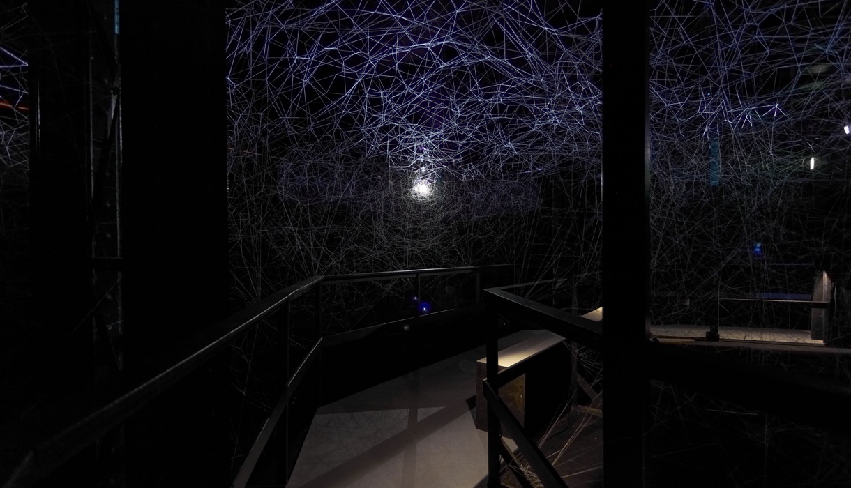 Yasuhiro Chida műve egy olyan immerzív környezetet hoz létre, ahol a teret betöltő milliónyi apró fénycsík és fénypont a háromdimenziós tér másfajta érzékelését teszi lehetővé.